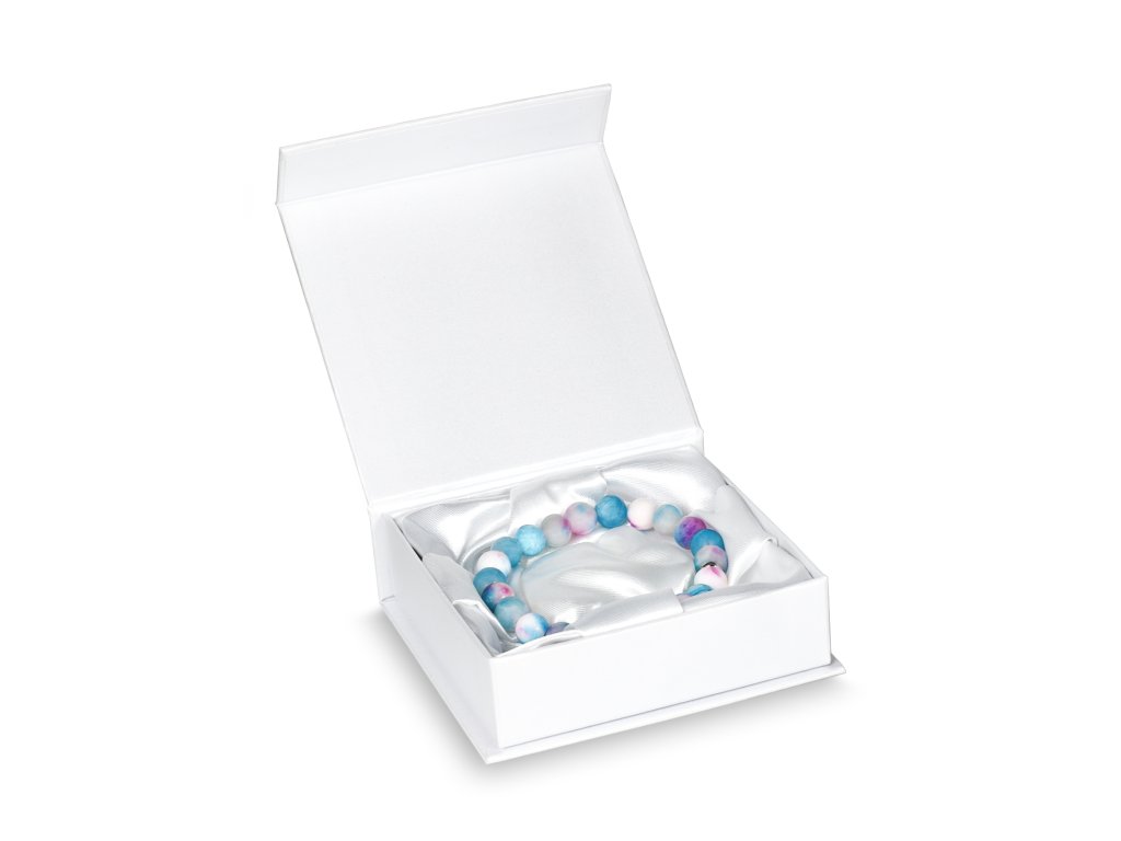 Elegantní bílá dárková krabička AGATO je navržena speciálně pro minerální náramky. Je vybavena praktickým magnetickým zavíráním, které zajišťuje snadné a bezpečné otevírání. Uvnitř se nachází jemná výstelka, která náramek krásně prezentuje a chrání. Stylové provedení dodává luxusní a profesionální vzhled.