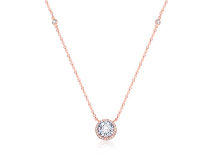Růžově pozlacený stříbrný náhrdelník se zirkony Jemný a romantický šperk, který zaujme svým elegantním kulatým přívěskem. Pozlacení růžovým zlatem dodává náhrdelníku hřejivý...