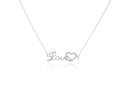 Stříbrný náhrdelník LOVE Romantický a hravý šperk, který je symbolem lásky a něhy. Dominantou náhrdelníku je nápis LOVE se srdíčkem, jenž působí jemně a elegantně. Třpytivé čiré...