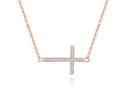 Růžově pozlacený stříbrný náhrdelník s křížkem Elegantní šperk, který propojuje klasický symbol víry s moderním designem. Růžové zlato dodává náhrdelníku romantický nádech a...
