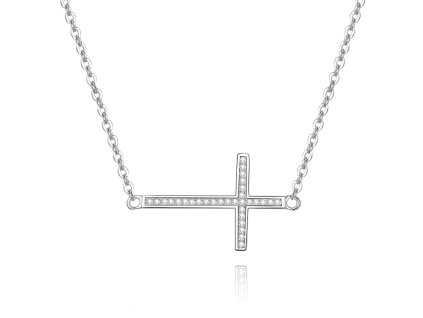 Stříbrný náhrdelník s křížkem se zirkony Elegantní a smysluplný doplněk, který spojuje nadčasový symbol s moderním designem. Dominantou náhrdelníku je přívěsek ve tvaru křížku,...