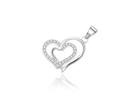 Originální stříbrný přívěsek – propojená srdíčka se zirkony Romantický přívěsek ve tvaru dvou propojených srdíček zaujme jemným a nadčasovým designem. Jedno srdce je zdobeno...
