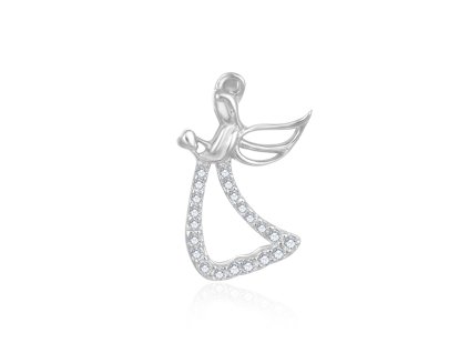 Stříbrný přívěsek se zirkony Andílek se srdíčkem Jemný přívěsek ve tvaru něžného andělíčka okouzlí svým něžným a hravým designem. Andílek drží v rukou drobné srdíčko, které...