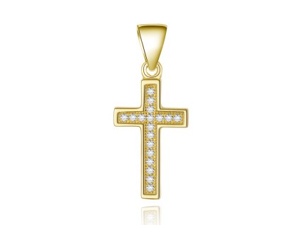Pozlacený stříbrný přívěsek Křížek se zirkony Nádherný přívěsek ve tvaru křížku zaujme jednoduchým a elegantním designem. Pozlacení dodává šperku luxusní nádech, zatímco...