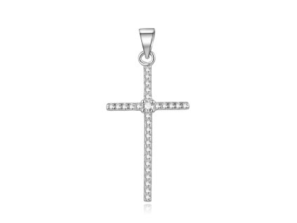 Stříbrný přívěsek se zirkony Křížek Elegantní přívěsek ve tvaru nadčasového křížku zaujme jemným a klasickým designem. Třpytivé čiré zirkony dodávají šperku oslnivý lesk a...