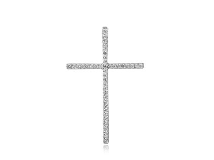 Stříbrný přívěsek křížek se zirkony Elegantní přívěsek ve tvaru křížku zaujme jednoduchým a nadčasovým designem. Třpytivé čiré zirkony dodávají šperku jemný lesk a oslnivý...