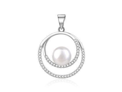 Půvabný stříbrný přívěsek s říční perlou a zirkony Elegantní přívěsek z kvalitního stříbra zaujme jemným a nadčasovým designem. Hlavním prvkem je pravá sladkovodní perla, která...