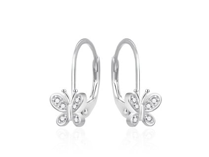 Stříbrné dívčí náušnice Motýlci se zirkony Náušnice s oblíbeným motivem motýlků zaujmou drobnými čirými zirkony, které dodávají šperku jemný třpyt a hravý vzhled. Perfektní...