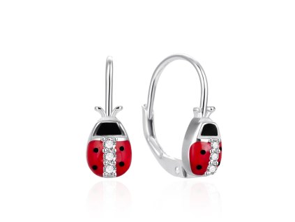 Stříbrné dívčí náušnice s beruškou Náušnice s propracovaným motivem berušky zaujmou kombinací čirých zirkonů a smaltu, které dodávají šperku jemný třpyt a hravý vzhled....