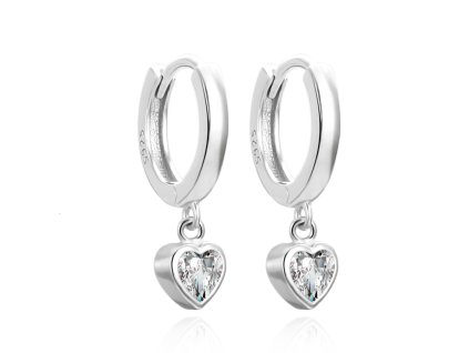 Romantické stříbrné kruhy se srdíčky Stylové stříbrné náušnice ve tvaru nadčasových kruhů s přívěsky zaujmou jemnými srdíčky, která dodávají šperku romantický a hravý detail....