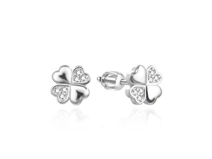 Stříbrné náušnice Čtyřlístek se zirkony Půvabné náušnice s motivem čtyřlístku jsou vyrobené z kvalitního stříbra ryzosti 925/1000. Symbol čtyřlístku představuje štěstí, radost a...