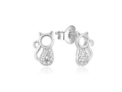 Stříbrné náušnice kočičky s jemným třpytem Půvabné náušnice ve tvaru kočiček kombinují hravý motiv s jemným leskem. Čiré zirkony doplňují design a dodávají náušnicím oslnivý...