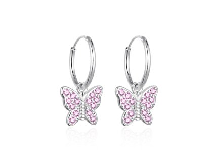 Dětské náušnice s kruhy a motýlky Nádherné náušnice z kvalitního stříbra kombinují nadčasové kruhy s něžnými motýlkovými přívěsky, které jsou zdobené třpytivými růžovými...