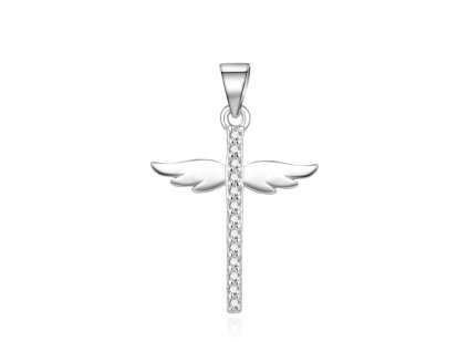 Hravý stříbrný přívěsek křížek s andělskými křídly a zirkony Originální přívěsek z kvalitního stříbra zaujme hravým a nadčasovým designem. Křížek je doplněn motivem andělských...