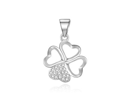 Stříbrný přívěsek Čtyřlístek se zirkony Něžný přívěsek ve tvaru čtyřlístku zaujme svým jemným a nadčasovým designem. Jeden z lístků je zdoben třpytivými čirými zirkony, které...