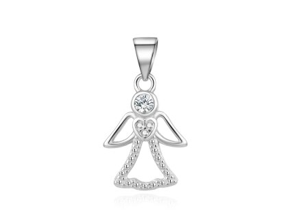 Něžný stříbrný přívěsek anděl se srdíčkem a zirkony Jemný přívěsek ve tvaru anděla zaujme něžným a půvabným designem. Uprostřed těla se nachází drobné srdíčko, které dodává...