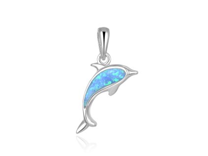 Hravý stříbrný přívěsek Delfín s modrým opálem Půvabný přívěsek z kvalitního stříbra zaujme tvarem elegantního delfína, symbolu hravosti a svobody. Modrý syntetický opál s...