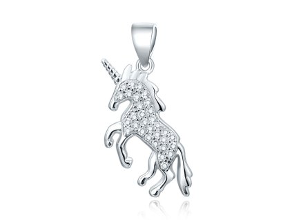 Stříbrný přívěsek Jednorožec se zirkony Roztomilý přívěsek ve tvaru jednorožce zaujme jemným a nadčasovým designem. Třpytivé čiré zirkony dodávají šperku oslnivý lesk a...