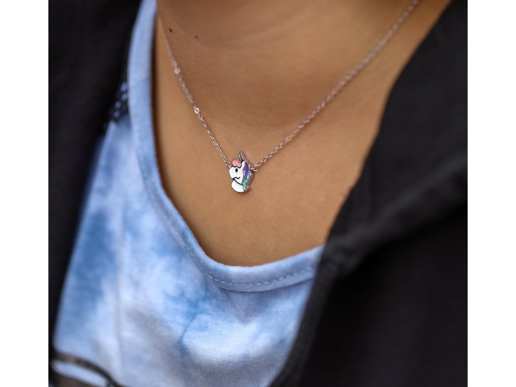 Dívčí stříbrný náhrdelník s barevným jednorožcem AGS1339/40D