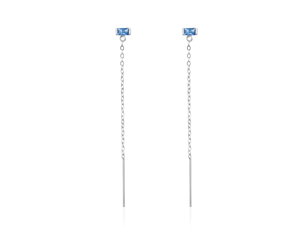 Dlouhé stříbrné náušnice s modrými zirkony AGT-E076PBL