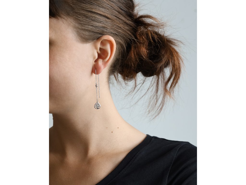 Dlouhé stříbrné náušnice se stromem života AGUV1967