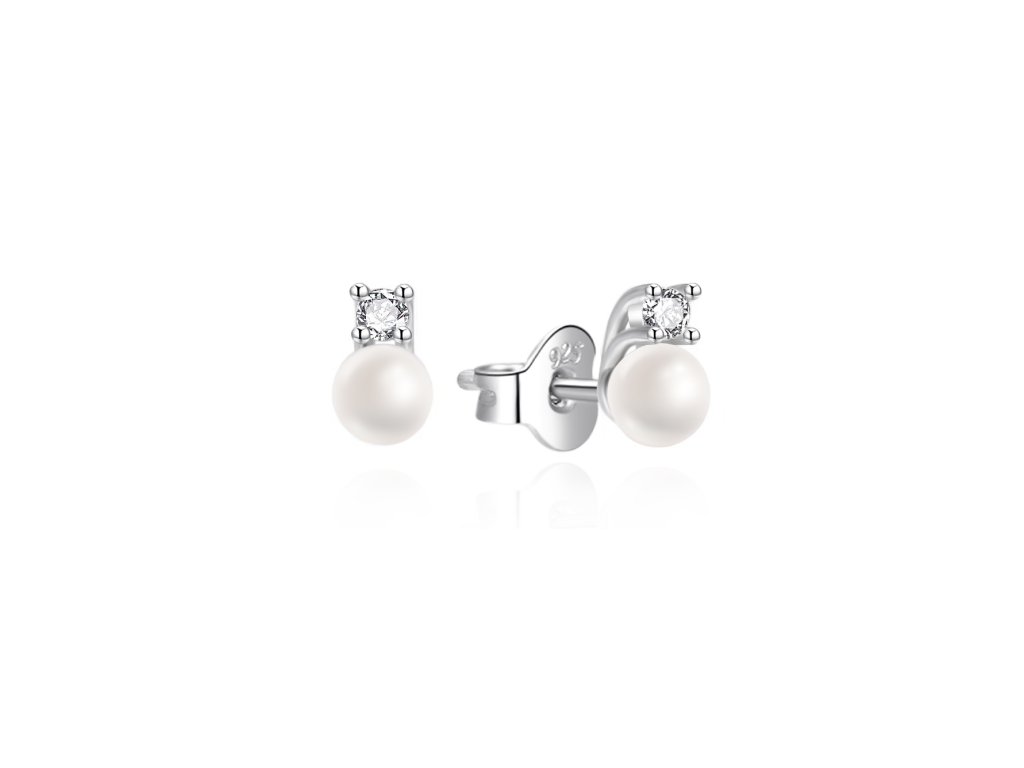 Drobné stříbrné náušnice s perlou a zirkony AGT-E241PW-P4