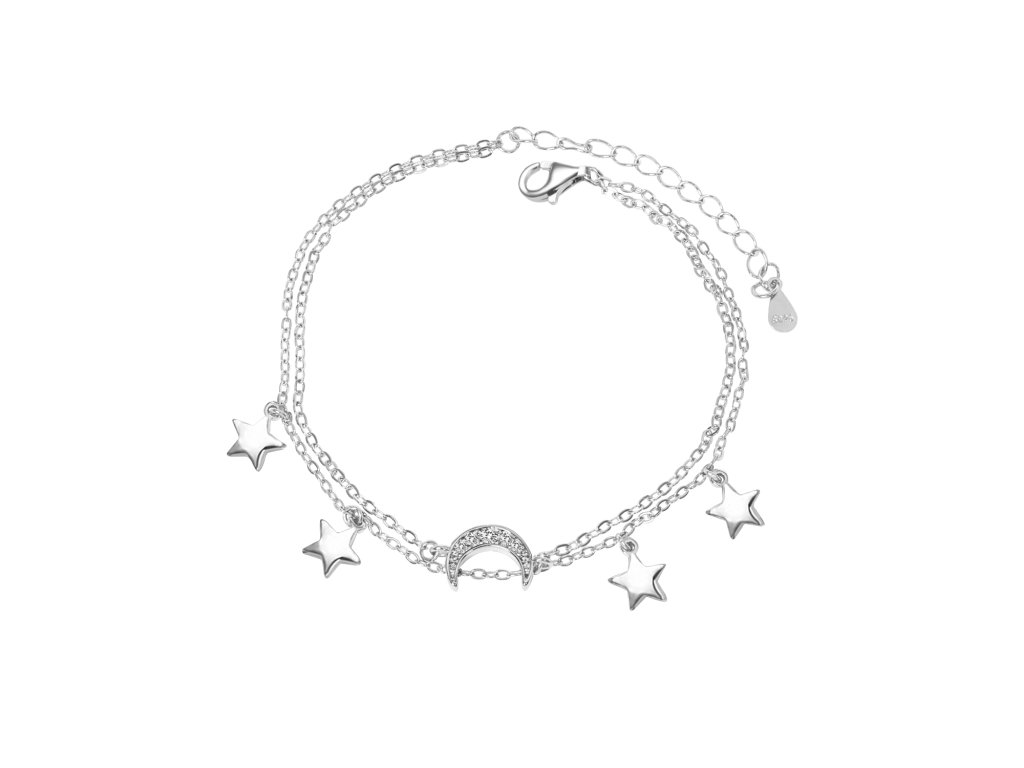 Dvojitý stříbrný náramek s měsíčkem a hvězdičkami AGB750/21