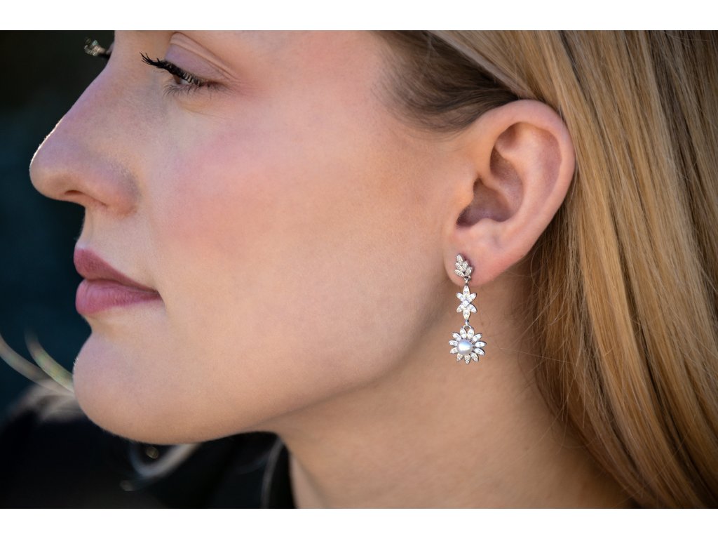 Vyrobené z kvalitního stříbra, náušnice mají praktické zapínání na puzetu, které zajišťuje pohodlné a bezpečné nošení. Tento doplněk přináší třpytivý, jemný a elegantní akcent, jenž dodá outfitu romantický a honosný nádech a připomene krásu každého okamžiku.