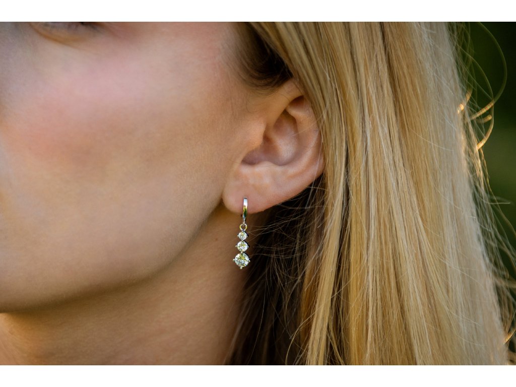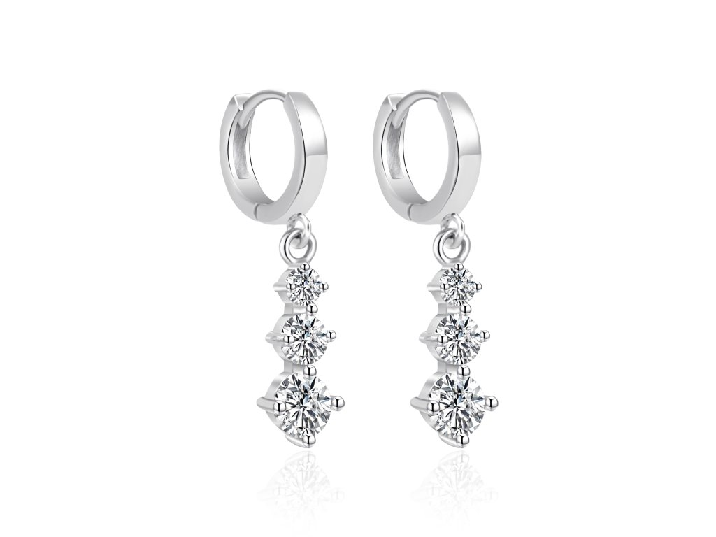 Vyrobené z velmi kvalitního stříbra, tyto visací náušnice kombinují precizně vsazené zirkony s pohodlným bezpečnostním zapínáním na kloub, které zajišťuje, že náušnice pevně drží a spolehlivě se nosí. Ideální pro ženy, které hledají jemný, elegantní a výrazný doplněk, nebo jako dárek, který vnese do outfitu třpytivý a nadčasový detail.