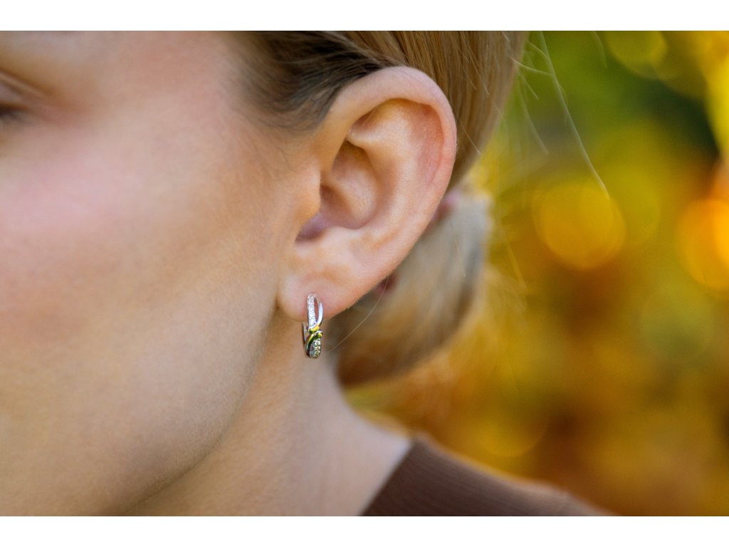 Díky praktickému bezpečnostnímu kloubu náušnice pevně drží na uchu a zajišťují komfortní nošení. Tento třpytivý kruhový šperk vnese do outfitu jemný třpyt a eleganci, působí moderně a nadčasově a je skvělou volbou pro ženy hledající stylový a univerzální doplněk.