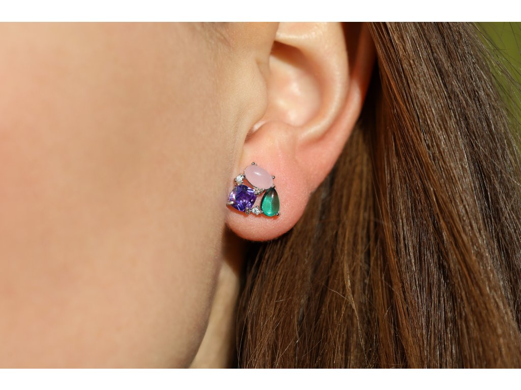 Vyrobené ze stříbra ryzosti 925/1000, náušnice mají praktické zapínání na puzetu, které zajišťuje pohodlné a bezpečné nošení. Tento šperk je ideální pro ženy, kteří hledají jemný, barevný a hravý doplněk, jenž dodá outfitu veselý a třpytivý nádech.
