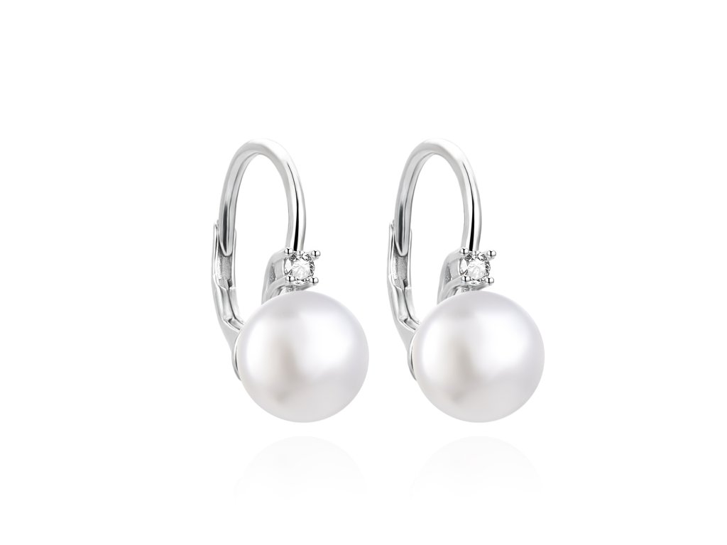 Elegantní náušnice s perlou a zirkonem AGUC3514P-W