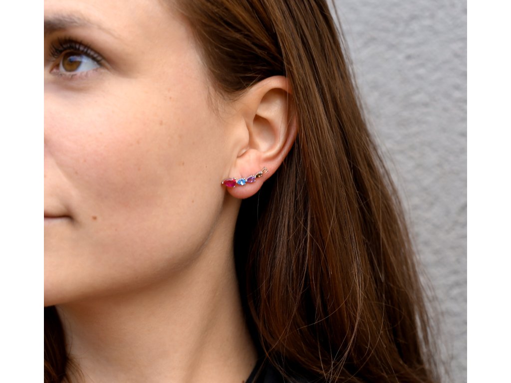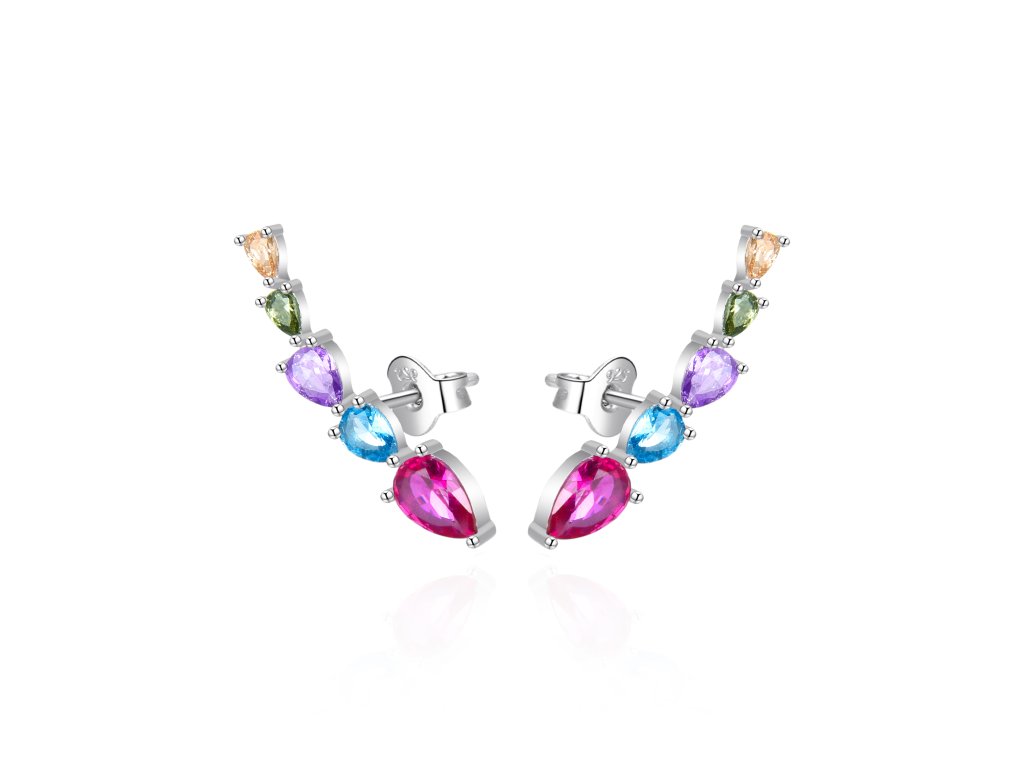Vyrobené z kvalitního stříbra, náušnice mají praktické zapínání na puzetku, které zajišťuje pohodlné a bezpečné nošení. Tento šperk je ideální pro ženy, které chtějí jemný, třpytivý a elegantní doplněk, jenž dodá outfitu barevný a oslnivý nádech.