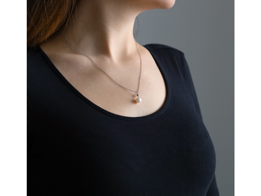 Vyrobený z kvalitního stříbra, zdobený říční perlou. Řetízek je provlečen drobnou stříbrnou kuličkou, díky které si můžete snadno upravit jeho délku. Základní délka činí 42 cm s možností prodloužení o 5 cm, takže náhrdelník skvěle padne každé ženě. Je ideální volbou pro ty, které milují jemnou eleganci a šperky podtrhující přirozenou krásu.