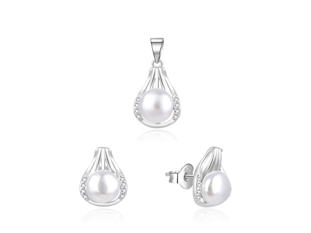 Elegantní stříbrná souprava šperků s říčními perlami AGSET271PL