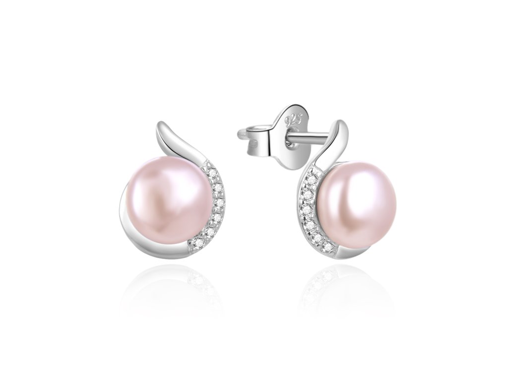 Elegantní stříbrné náušnice s pravou perlou a zirkony AGT-E219PW-PPI