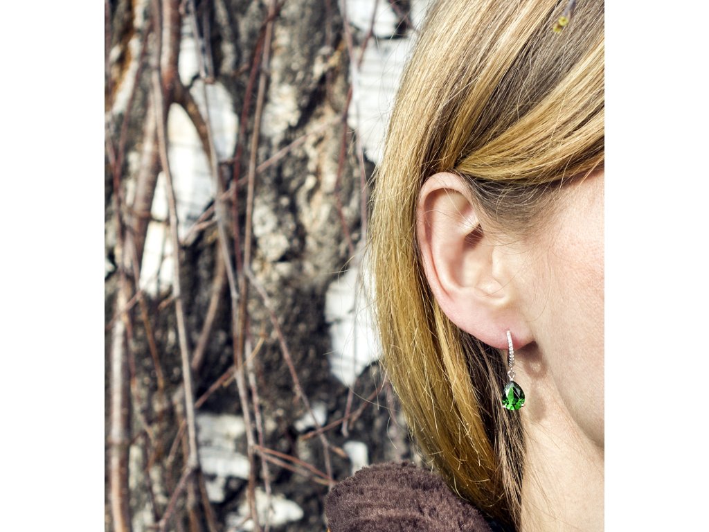 Elegantní stříbrné náušnice se zelenými zirkony AGUC2249