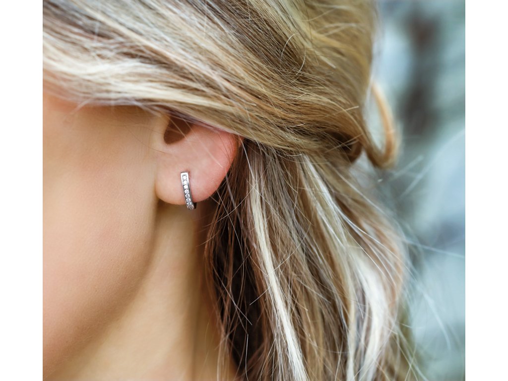 Vyrobené z velmi kvalitního stříbra, tyto náušnice kombinují precizně vsazené zirkony s pohodlným zapínáním na patent, které zajišťuje bezpečné a příjemné nošení. Skvělá volba pro ženy, které hledají jemný, elegantní a nadčasový doplněk, nebo jako dárek, který vnese do outfitu třpytivý a sofistikovaný detail.