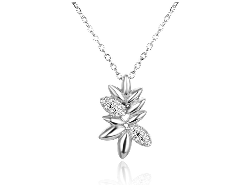 Vyrobený z kvalitního stříbra, zdobený přívěskem s jemným rostlinným motivem. Přívěsek je osazený třpytivými čirými zirkony, které se nádherně lesknou na světle. Tento náhrdelník je ideální pro ženy, které mají rády elegantní šperky, jemné detaily a design inspirovaný přírodou.
