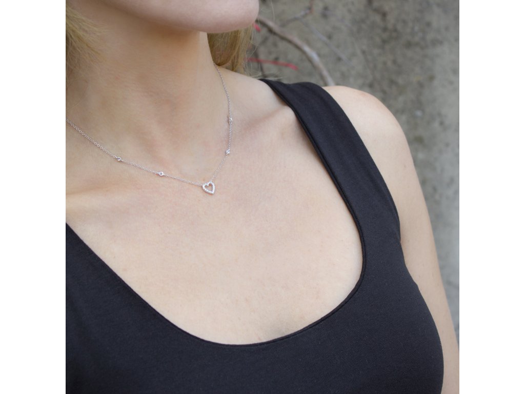 Jemný stříbrný řetízek zdobí přívěsek ve tvaru srdce, který je osazený precizně broušenými čirými zirkony. Délka náhrdelníku je 42 cm s možností prodloužení o 5 cm, takže perfektně padne každé ženě. Tento šperk je krásným způsobem, jak vyjádřit lásku a výjimečnost, a stane se oblíbeným doplňkem pro každý den.