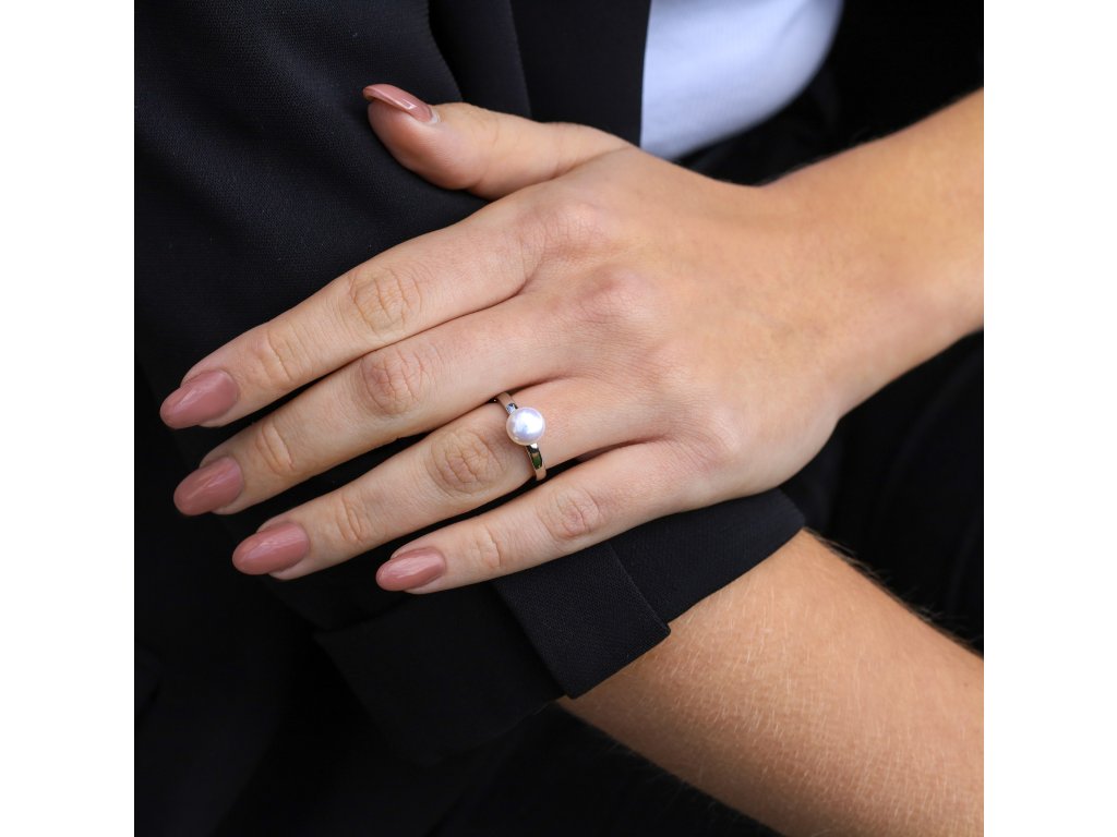 Elegantní stříbrný prsten s perlou AGG29