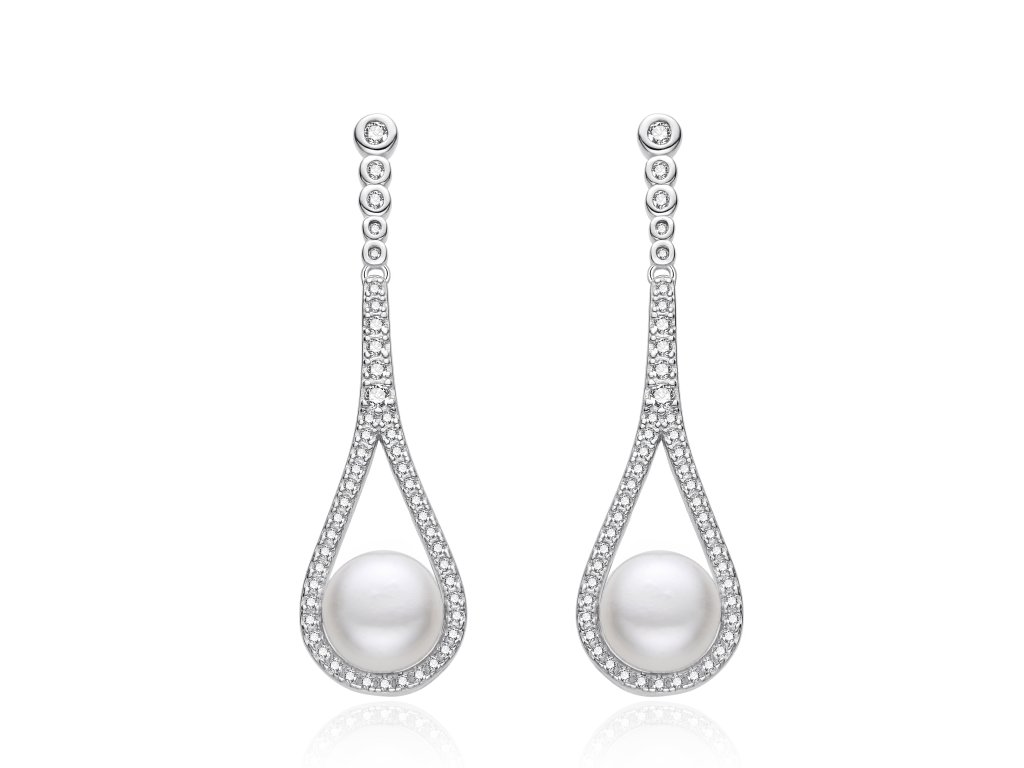 Elegantní visací náušnice se zirkony a perlou AGT-E150PW-P