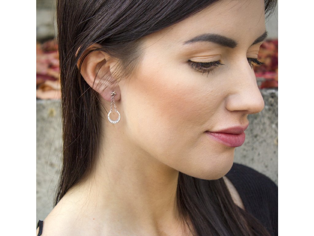 Vyrobené z kvalitního stříbra, tyto náušnice kombinují jemný a výrazný design s pohodlným zapínáním na puzetku, které umožňuje bezpečné nošení po celý den. Jsou ideální pro ženy, které hledají stylový doplněk, a hodí se také jako originální dárek. Tento visací stříbrný šperk vnese do každodenního outfitu kousek elegance a třpytu, vhodný pro běžné i slavnostní příležitosti.