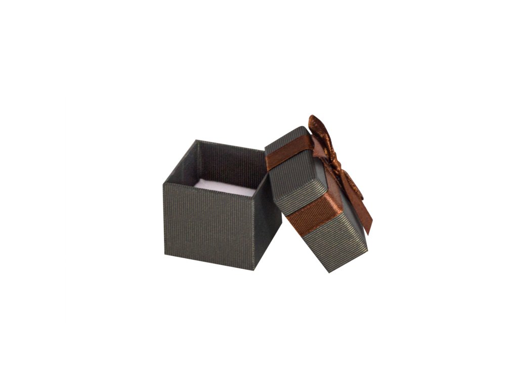 Vroubkovaná pevná papírová dárková krabička je ideální pro uložení prstenu, přívěsku nebo drobných náušnic. Uvnitř je měkká bílá poduška a víčko zdobí krásná hnědá mašlička.