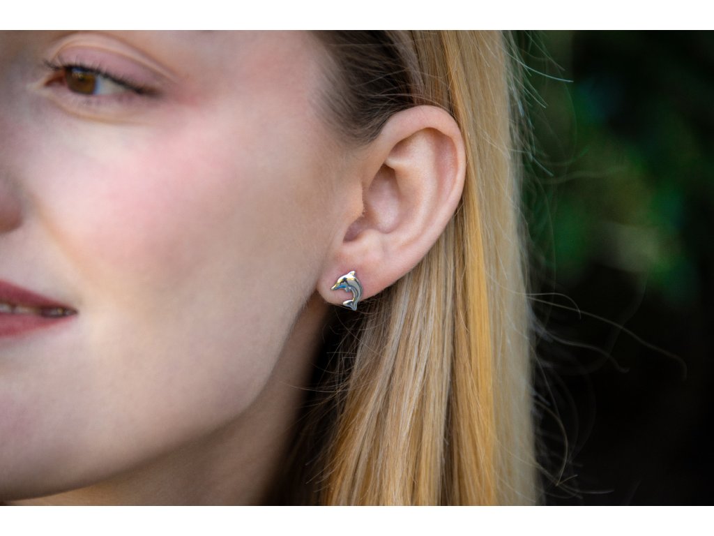Hravé stříbrné náušnice s delfínem AGT-E099P