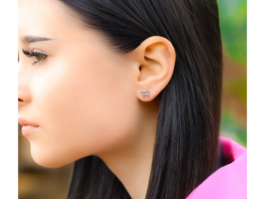 Vyrobené z kvalitního stříbra ryzosti 925/1000, tyto náušnice spojují jemný motiv motýlků s pohodlným zapínáním na puzetku, které zajišťuje bezpečné a pohodlné nošení po celý den. Ideální pro ženy i dívky, které hledají barevný a elegantní doplněk, a hodí se také jako půvabný dárek. Tento stříbrný šperk vnese do každodenního outfitu kousek hravosti a třpytu, vhodný na běžné i slavnostní příležitosti.