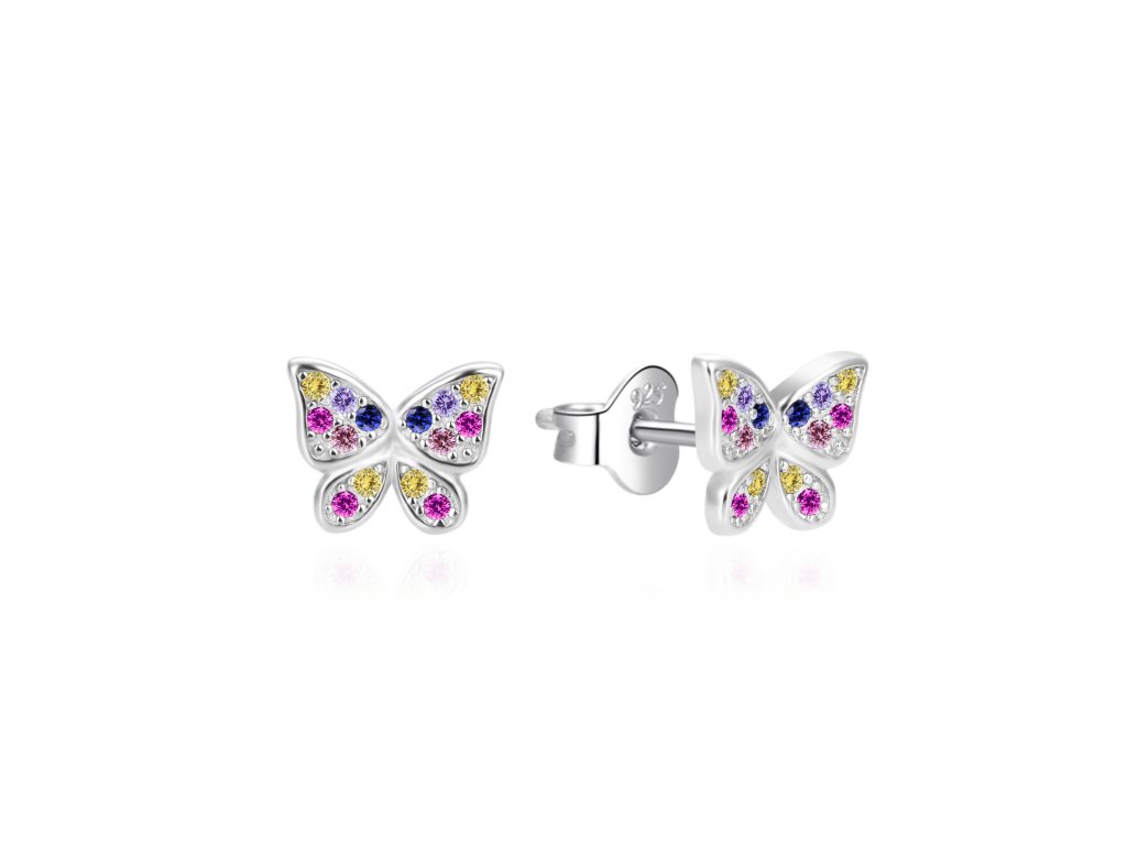 Hravé stříbrné náušnice s motýlky AGT-E210PC