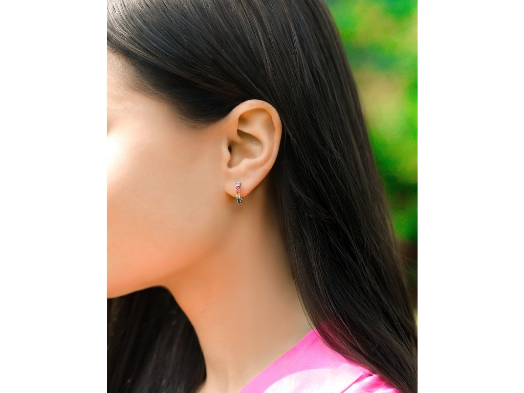 Díky praktickému zapínání na kloub náušnice pevně drží na uchu a zajišťují komfortní nošení. Barevné zirkony vytvářejí jemný a zároveň živý detail, který dokáže rozzařit každý outfit, a jsou ideální jako stylový dárek pro ženy i dívky.