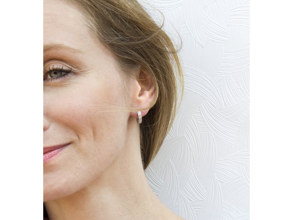 Vyrobené z kvalitního stříbra, tyto náušnice kombinují oslnivé zirkony s pohodlným bezpečnostním zapínáním na patent, které zajišťuje bezpečné a pohodlné nošení. Ideální pro ženy, kteří hledají jemný, elegantní a nadčasový doplněk, nebo jako dárek, který vnese do outfitu třpytivý a sofistikovaný detail.