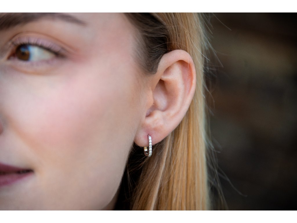 Vyrobené z kvalitního stříbra, tyto náušnice kombinují oslnivě třpytivé zirkony s praktickým zapínáním na kloub, které zajišťuje bezpečné a pohodlné nošení. Skvělá volba pro ženy, které hledají výrazný, ale jemný doplněk, nebo jako dárek, který vnese do outfitu třpytivý a elegantní detail.